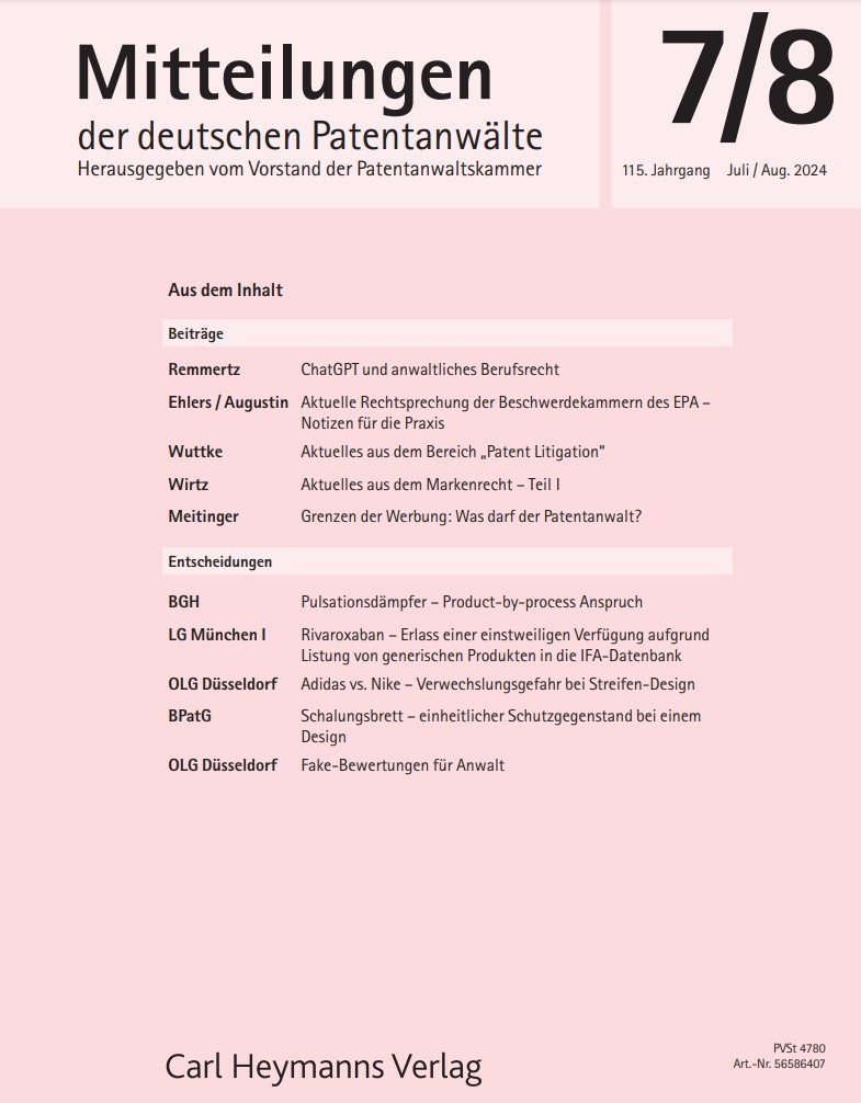 Dr. Meitinger diskutiert in der Doppelausgabe des Jahres 2024 die Möglichkeiten der Werbung für die Dienstleistungen eines Patentanwalts.