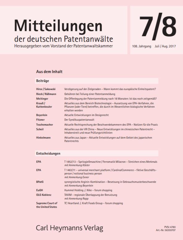 Dr. Meitinger beschreibt in der Juli/August-Ausgabe des Jahres 2021 die Gebrauchsmusterabzweigung im deutschen und europäischen Einspruchsverfahren.