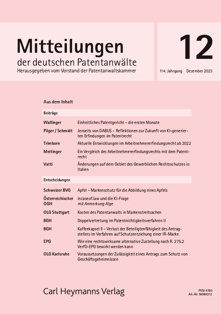 Dr. Meitinger erläutert in der Dezember-Ausgabe des Jahres 2023 insbesondere die unterschiedliche Verwendung der Begriffe "Neuerung" und "Erfindung" im Arbeitnehmererfindungsrecht und im Patentrecht.